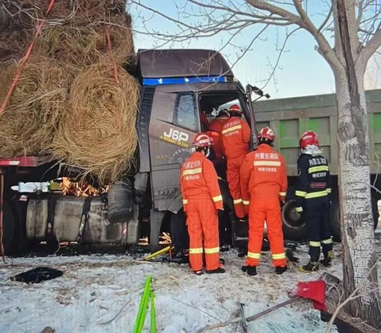 1月3日,牙克石规划七街消防站接到报警称豪德物流东侧路边发生交通事故一人被困,消防站立即出动到场处置。