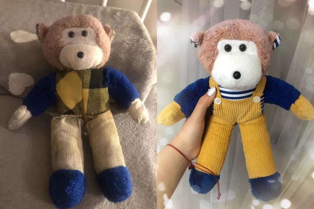 收到娃娃后,顾客又惊又喜,给她发消息说,修复之前没想到它能变成这个样子。即使有些时光回不去了,有些人不在了,看到这个玩偶,好歹可以让她明确滴知道,自己曾经被这样爱过,那些珍贵的时间时确凿无疑存在的。