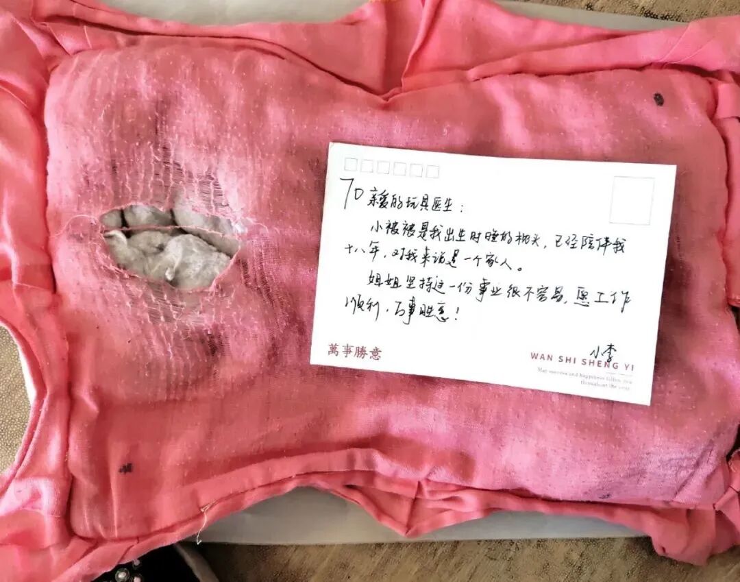 所以很多主人把玩偶寄过来的时候,还会附上一封长长的手写信,毫不吝啬的分享自己和玩偶的故事。更有人认真叮嘱:“给娃娃手术的时候轻一点,它们很怕疼”。