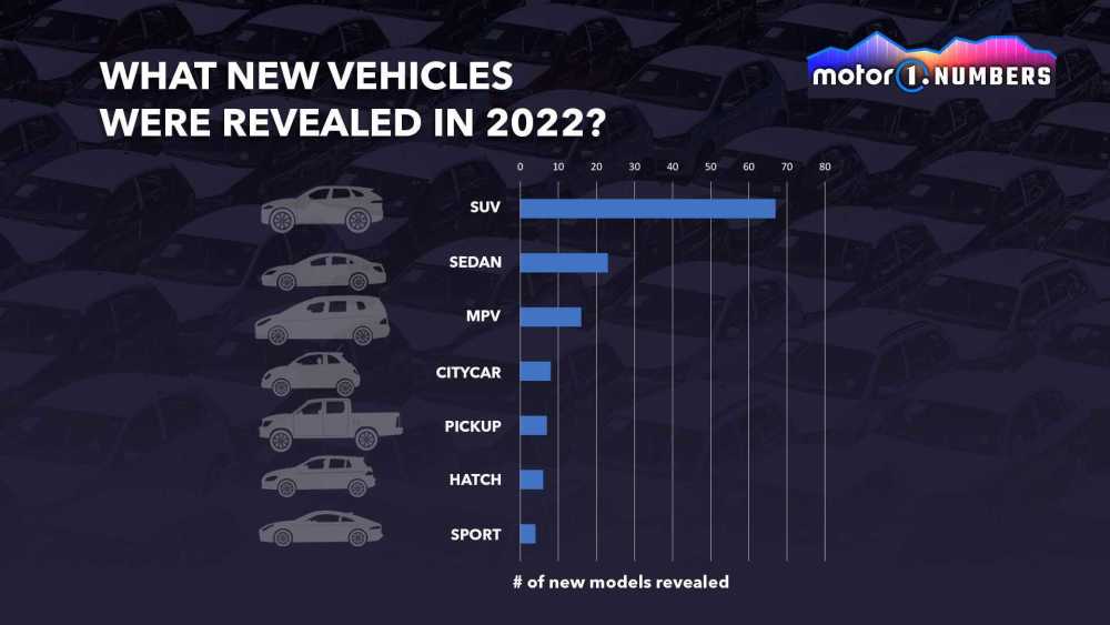 有点令人惊讶的是,尽管欧洲和北美的小型货车和MPV销量下降,但2022年仍有16款新型MPV推出。与轿车一样,这些新车型中有一半来自中国市场。2022年是中国汽车市场丰收的一年,各种新车层出不穷,特别是电动汽车市场,不仅仅是新势力集中发力,许多传统车企也开始了电气化转型,新能源可谓遍地开花。新产品包括小鹏G9、东风日产Ariya艾睿雅、比亚迪海豹/海豚/元PLUS、长安深蓝SL03、理想L9、东风本田e:NS1、比亚迪新款汉DM、AITO问界M5、蔚来ET7/ET5/ES8/EC7等等。