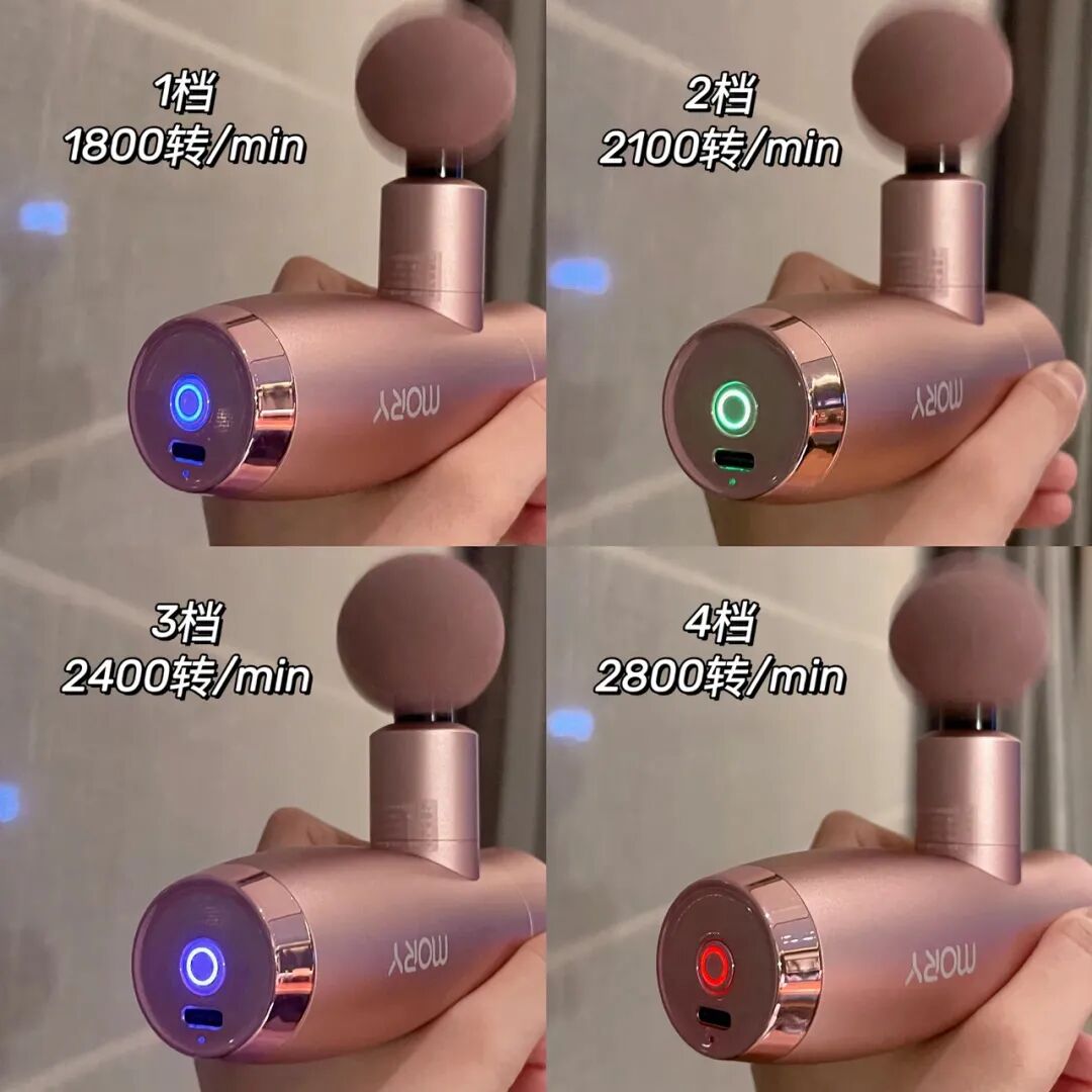 同时小蛮腰筋膜枪还有 4 档模式,涵盖 1800~2800 转 / min,一键切换多档调节,缓解大家不同程度的肌肉酸痛,就像是请了一个「全自动」的按摩师傅,大家再也不用「轻一点」「太重了」的滋哇乱叫了。
