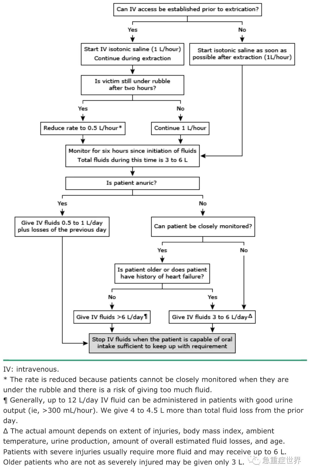 流程图1. 用于地震等高伤亡灾害的挤压伤者的初始静脉输液
