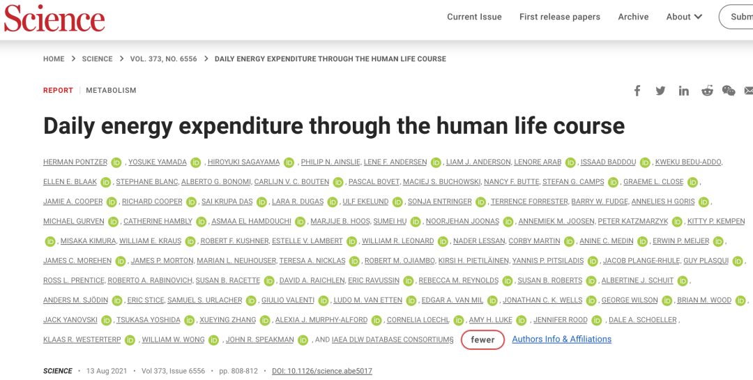 [1] Herman Pontzer, Yosuke Yamada, Hiroyuki Sagayama, et al. Daily energy expenditure through the human life course. Science. 2021.