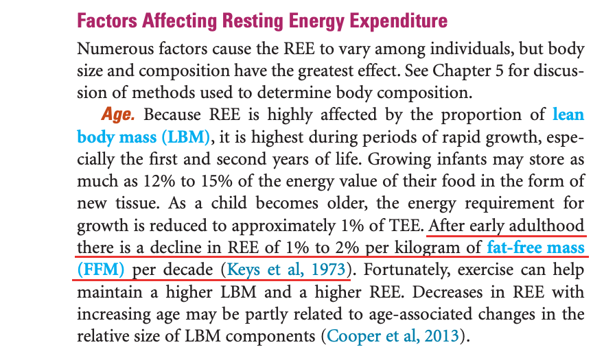 确实,营养学领域的权威教科书《Krause营养诊疗学(2020年第15版)》中有关年龄与代谢的内容仍是青春期后基础代谢率每10年会降低1%-2%。[2]