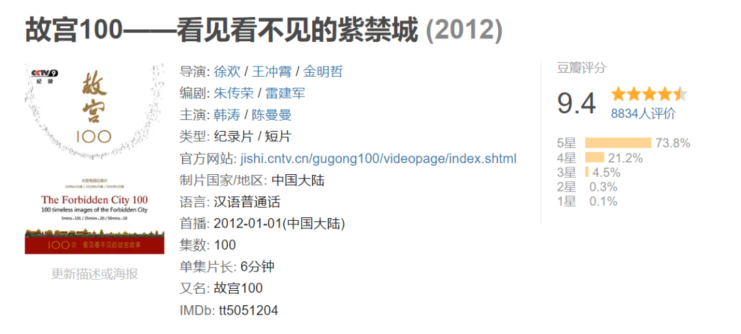 故宫不仅是皇宫,更是一座博物院,是中华文明的集大成者,是传承中华文明的基地。《故宫100》以故宫为源泉,延展到整个华夏大地,从古到今,讲述中华文明的悠久历史和灿烂瑰宝。