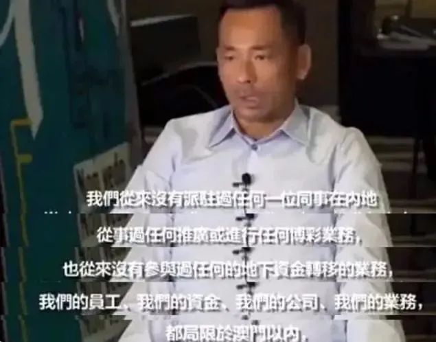 在去年7月接受采访时言之凿凿:自己从来没在中国内地从事过任何推广或进行任何博彩业务,也从没有参与过任何地下资金转移的业务,所有的业务和资金都仅限于澳门。