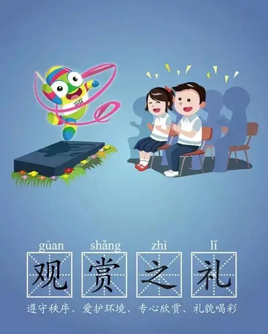 遵守秩序、爱护环境、专心欣赏、礼貌喝彩。