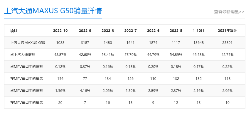 从销量方面来看,该款车型在今年1~10月份中累计销量数据为13,648台,月均销量成绩仅有1000台出头,市场表现不温不火。在车叔看来,该款车型具有许多显著缺点,比如说没有匹配侧滑门,内饰设计略显陈旧等,整车仍有很大的提升空间,消费者完全可以再看看其他同价位车型,没必要非它不可。