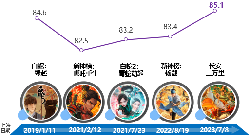 《长安三万里》是追光动画继“白蛇”新传说、“新神榜”之后,推出的“新文化”系列动画电影,以诗人李白和高适的情谊为脉络呈现史诗感的大唐恢弘历史和壮美画卷,影片满意度居追光动画这一系列动画电影的第一位。