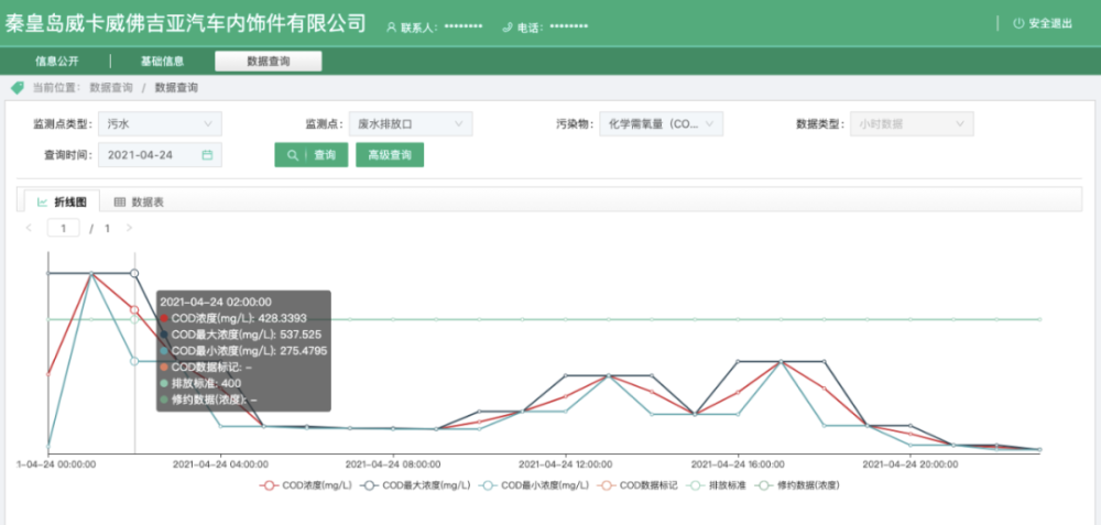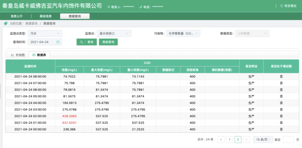 图片来源:河北省污染源自动监控系统2021年4月24日COD数据截图