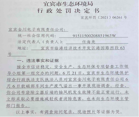 1.电池壳体供应商北京子公司2021年接3张罚单