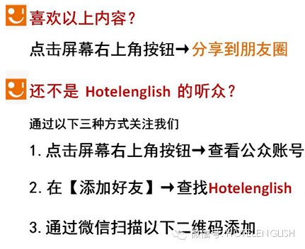 适合人群:酒店基层服务人员及酒店专业英语爱好者