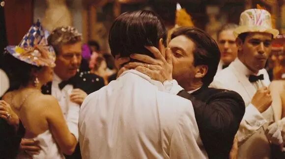 14、《教父2》1974年阿尔·帕西诺VS约翰·凯泽尔迈克尔发现叛徒就是哥哥弗雷多后,走近他哥哥,用双手扣紧他的脖子,激烈地吻着他的嘴,说:“我知道是你干的,弗雷多。你伤透了我的心,你伤透了我的心。”