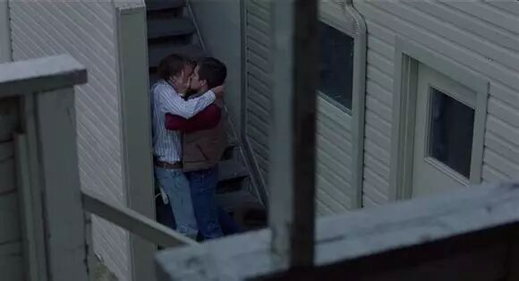 39、《断背山》2005年希斯·莱杰VS杰克·吉伦哈尔在断背山度过了一段美好时光之后,杰克与恩尼斯回归了各自生活。四年之后,饱受相思之苦的二人在恩尼斯的家中再次见面。时光的流失并未冲淡两人心中炽热的情感,在楼梯口热烈激吻。但这一幕,却被恩尼斯的妻子透过窗户尽收眼底。