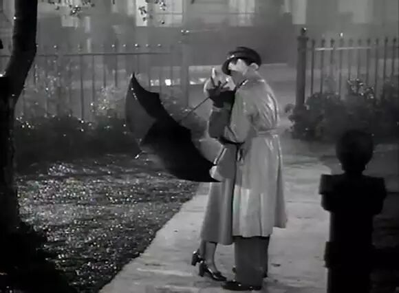4、《魂断蓝桥》1940年罗伯特·泰勒VS费·雯丽玛拉在宿舍凭窗而望,挂念着英吉利海峡上的罗依。突然,她意外地发现罗依就站在窗外的雨中。于是,罗拉急忙飞跑出去,扑到罗依怀里,两人热吻起来。玛拉双脚踮起,右手拿着的伞歪到一边,这一经典的接吻瞬间便永久的铭刻在电影史册上了。