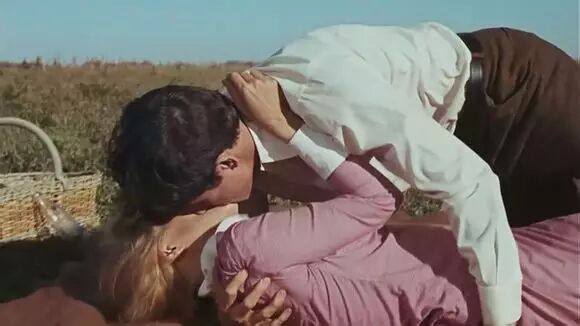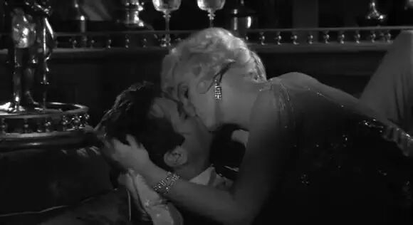 12、《热情似火》1959年托尼·柯蒂斯VS玛丽莲·梦露乔假扮成一名石油大亨邀请性感女郎秀珈到一艘豪华游艇上,并且声称自己性冷淡,对女人没有兴趣,如果有哪个女人能治好他的病就会娶她。秀珈果然上钩,用自己的美色给乔治病,趴在他身上亲吻起来。导演怀尔德在这里用了一个性隐喻来暗示乔被亲吻之后的反应——一只高高翘起的脚。