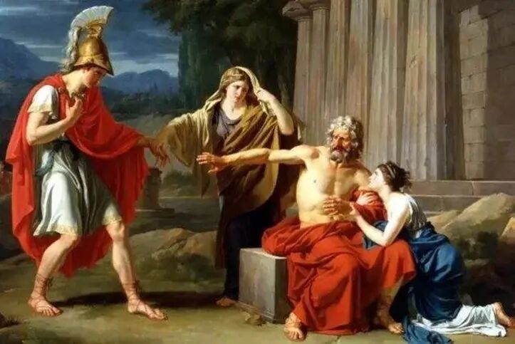 波吕涅克斯呀,只因为埋葬你的尸首,我现在受到这样的惩罚。可是在聪明人看来我这样尊敬你是很对的。如果是我自己的孩子死了,或者我的丈夫死了,尸首腐烂了,我也不至于和城邦对抗,做这件事。我根据什么原则这样说呢?丈夫死了,我可以再找一个;孩子丢了,我可以靠别的男人再生一个;但如今,我的父母已埋葬在地下,再也不能有一个弟弟生出来。我就是根据这个原则向你致敬。(v.902—913)