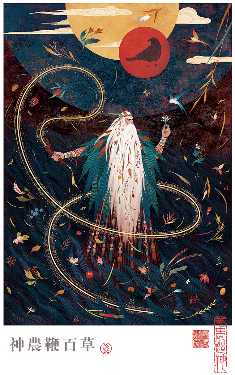 其实神农发明中医药还有一个版本——“神农鞭百草”,说神农不是用嘴尝出中药药性,而是用一条特殊的鞭子打出来的。《史记·补三皇本纪》记载“神农以赭鞭鞭草木,尝百草,始有医药”。赭为红褐色,“赭鞭”大约是条红褐色的鞭子,第二个“鞭”为动词,意思为鞭打、抽打等意思。从文看,这位炎帝是先用“赭鞭”抽打草木,确定哪些有药用价值,然后再去品尝一下药性,这比盲目品尝植物要合理许多。这条“赭鞭”确实非同小可,我们以后还会提到它。