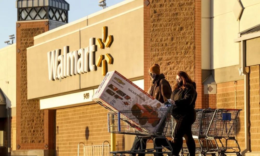 当地时间2021年11月26日,美国黑色星期五来临,购物者在沃尔玛超市选购折扣商品。图片来源:视觉中国