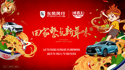 对于中华民族来说,春节自古以来都是一年一度的“大日子”!对于品牌来说,新年之际,借此契机与用户深入沟通却是一个难得的机会,如何做好年味营销是品牌厂商在新年要应对的第一个挑战。今年春节即将到来之际,东风风行联合广西本土品牌螺霸王打造【回家整点新年味】主题系列贺岁活动,其中不仅有味蕾的新享受,更有嗅觉的五连击,还有不敢相信的超级巨奖,在提升品牌影响力和声量的同时,也助力品牌一举从春节营销大战中脱颖而出,开启了民族品牌强强联手、深化合作的新篇章。