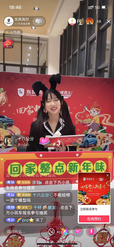 1月5日-1月15日,东风风行直播间同样会带来超多重磅购车福利,让大家一次买过瘾。期间不仅会还将有重磅的抽奖环节,超级巨奖同样是1台风行游艇追风版+1台风行T5 EVO星耀版各5年的免费使用权,联名品牌螺霸王的直播间也将与东风风行直播间进行连线,为大家炸一波螺蛳粉福利。想“刮”车的用户朋友,记好时间按时进直播间,不要错过抽奖环节。此外,东风风行直播间主播还将进入螺蛳粉生产线,带大家以第一视角观看螺蛳粉生产;还将进入螺蛳粉博物馆,了解螺蛳粉发展历程,全面感受柳州名片螺蛳粉的独特魅力。