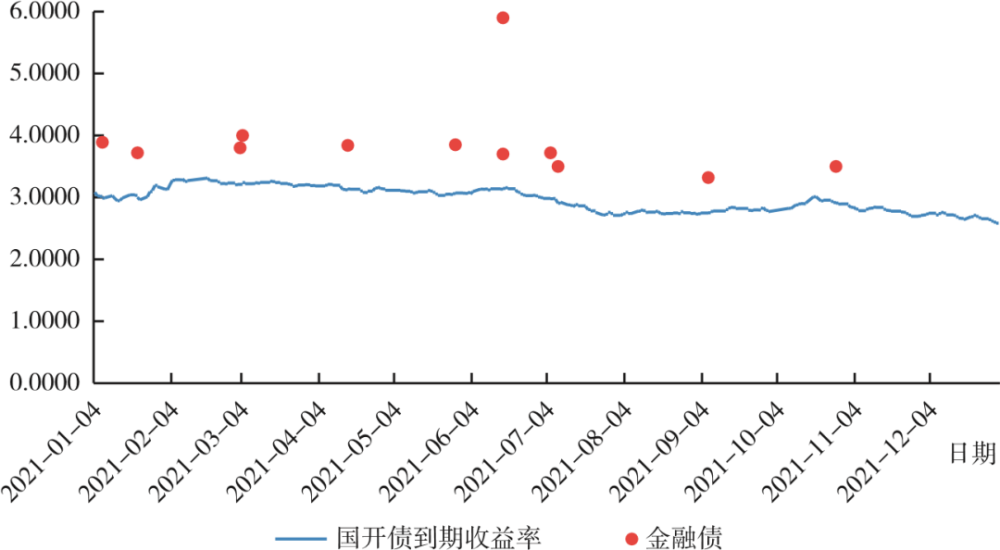 在发行利率方面,2021年的发行利率维持在低位(2021年汽车金融公司金融债发行利率见图17),总体来看,2020—2021年汽车金融公司金融债发行利率水平与三年期国开债到期收益率走势基本一致。