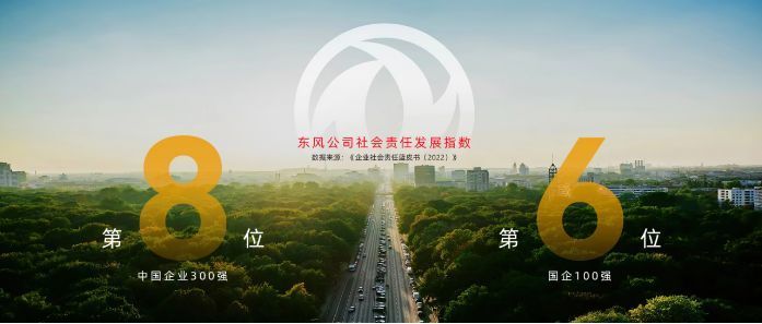 东风公司始终坚持把社会责任全面融入企业发展战略、企业生产经营和企业文化,扎实按照东风社会责任“润”计划3.0的整体部署,在抗震救灾、乡村振兴、绿色环保、人才培养等多方面全力施为。11月,国务院国资委、中国社科院等单位联合发布的《企业社会责任蓝皮书(2022)》显示,东风公司2022年社会责任发展指数位列中国企业300强第8名,国有企业100强第6名,创历史最好水平。凭借在社会责任领域的不断创新与成功实践,东风公司还荣获“责任金牛奖”、“责任引领奖”,被授予 “2022年度中国益公司”、“公益慈善杰出企业”,并入选“2022年度汽车行业公益典范”。