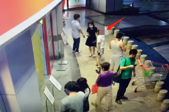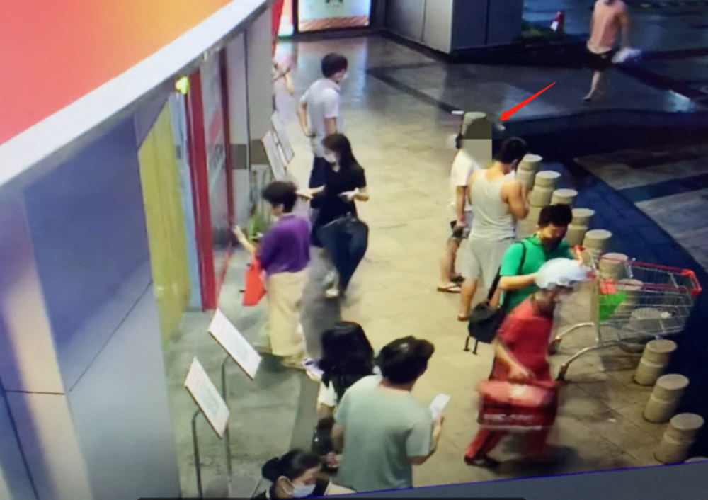于8月24日18:46—18:52左右,在龙昆南大润发商城门口(详见图,箭头指向人员为新冠感染者)。