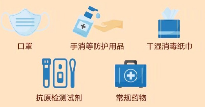 (2)准备好防护用品:准备充足的口罩、免洗手消毒剂等防护物资。