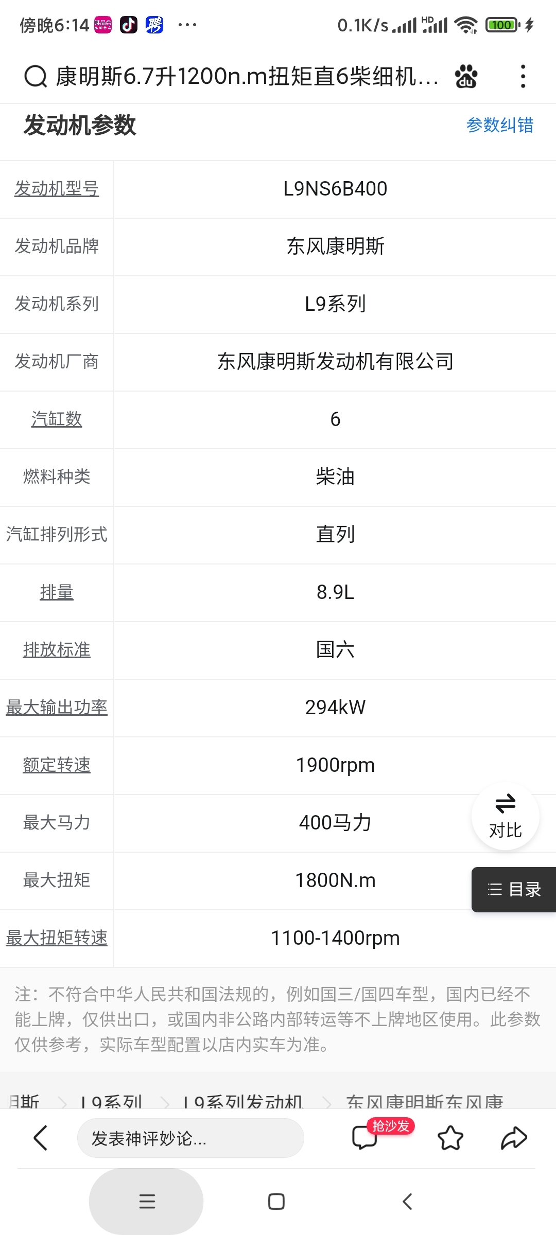 用康明斯8.9L国6B排放1800n.m扭矩的不好?
