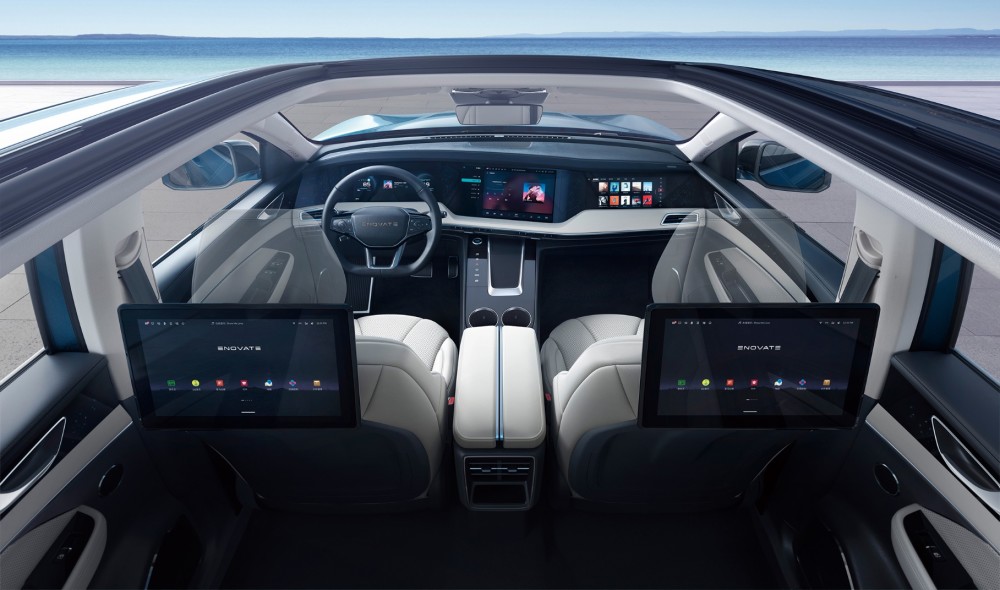 值得一说的就是刚才提到的5+X屏即时互联。所谓5+X屏,其实就是车内的仪表盘、中控屏、副驾驶屏幕以及后排双屏在内的5块大屏,这五块屏幕可是厉害了,不仅可实现多屏动态推送,还可以实现多个功能的共享。对于这个价位来说,天际ME7的智能化程度在我看来已经很高了。