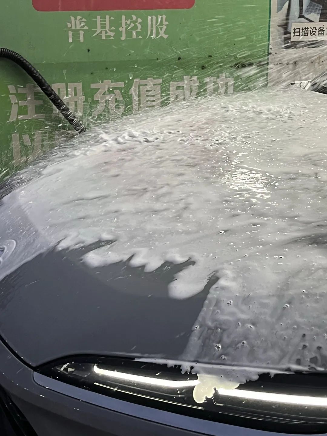 这环节结束,最后清水仔细洗一遍,粗糙的洗法就可以把车开出场收水了。更细致一点的,再打一遍泡沫,第二遍冲洗,洗车一定要比洗自己认真。