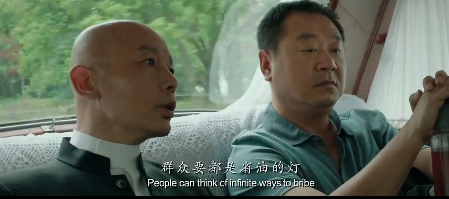 其实,早在冯导的上一部影片《私人定制》中,就借范伟的口说出了那句:“群众里面有坏人啊”的至理名言。葛优大爷神补一句:“废话,群众要都是省油的灯,就不会有那么多官员被拉下水了。”
