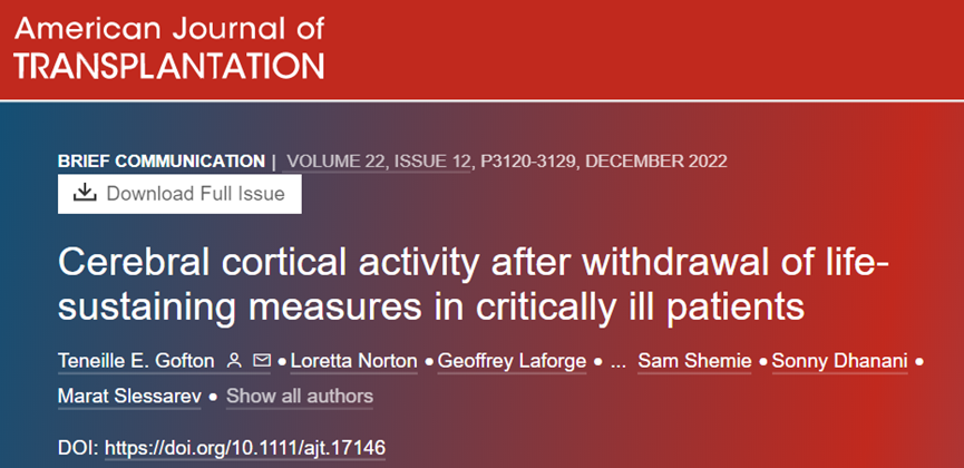 为了打消这个疑虑,加拿大西部大学重症监护和器官捐献方面的专家Marat Slessarev博士及其同事开展了多项研究。首先是一项针对危重患者进行的生命维持设备移除前后大脑皮层活动的前瞻性记录研究。该研究共纳入了8名可分析的患者,结果显示,这些患者一但脱离了维生设备,随着血压降低到一定的水平以下,在他们的心脏停止跳动之前(中位时间为78秒),他们的脑电图就不再活动了。也就是说,这些患者在循环系统死亡前,大脑就已经死亡了。尽管需要在更大规模的多中心研究中对这些发现进行确认,但Slessarev博士表示,希望通过这项研究以帮助提高利益相关者对DCD的信任。
