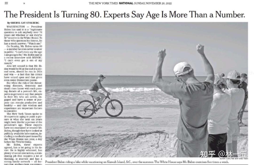 我们举个例子,去年11月20日,《纽时》在拜登八十大寿这天发了一篇给总统祝寿的文章,请了一堆医学和科学专家,用了以下这些句子来形容八十岁的总统: