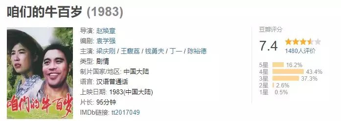 1983年的《咱们的牛百岁》主要歌颂了联产承包制,但感情戏做得也足,王馥荔老师扮演的菊花漂亮、和气,很有女人味,但就是因为有点"小心思",就被村民(特别是其他农村妇女)冠以"狐狸精"、"破鞋"等诸多称号,她和先进带头人牛百岁之间若有若无的情愫也成为了推动剧情走向的关键。