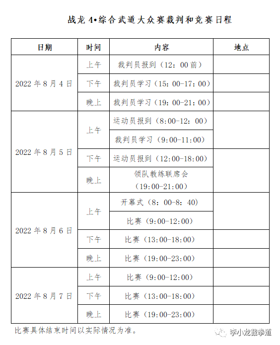 附件1:战龙4·综合武道大众赛裁判和竞赛日程