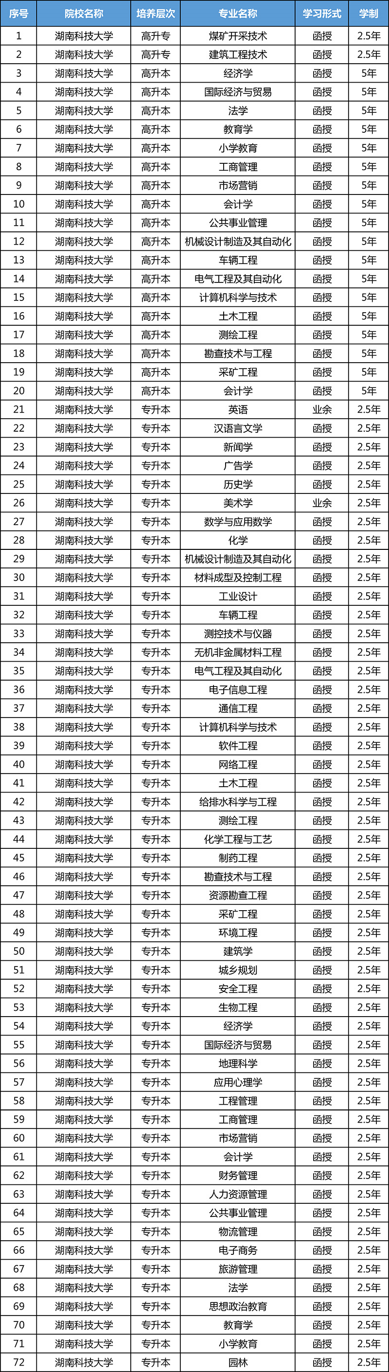 二、湖南科技大学成人高考招生计划表