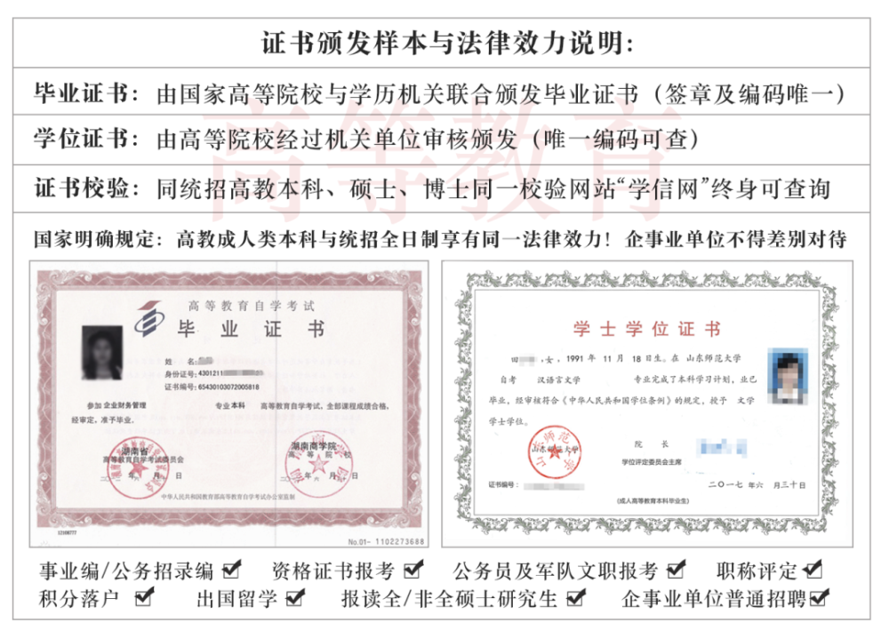 其法律用途:资格证书报名、事业与公务编制报考、考研升学、积分落户、求知均可使用,证书可全国范围内查询,终身有效。