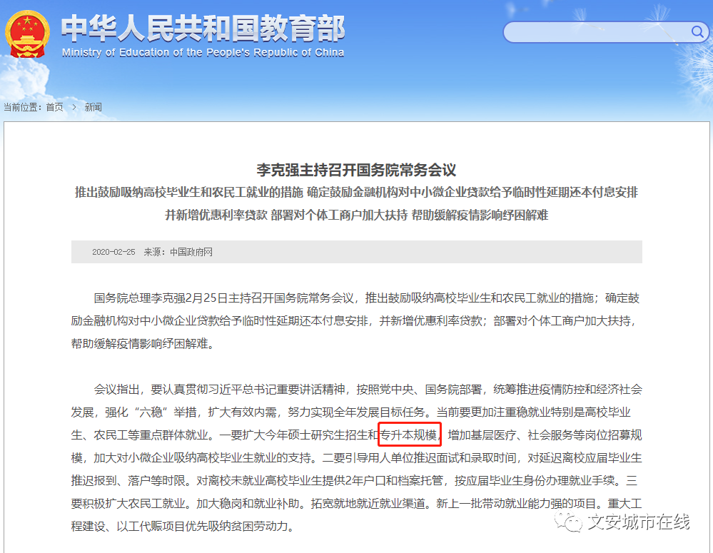 ——教育部"扩大专升本规模"文件截图——