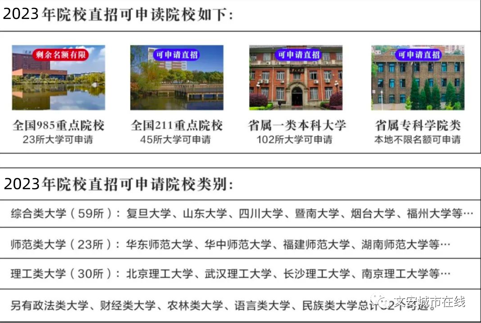 特开通2023年第一批直升本科特招通道: