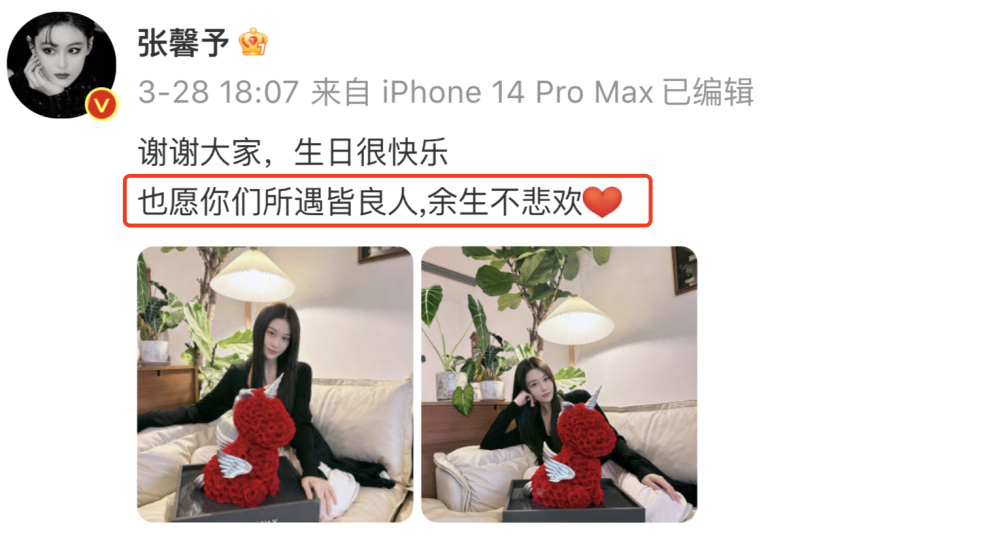 张馨予收到了独角兽玫瑰花,真是把生日过成了情人节。虽然张馨予未晒出同框照,但是大家也直呼磕到了。