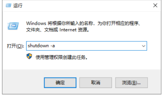 4、如果想要取消,就输入shutdown -a,点击确定