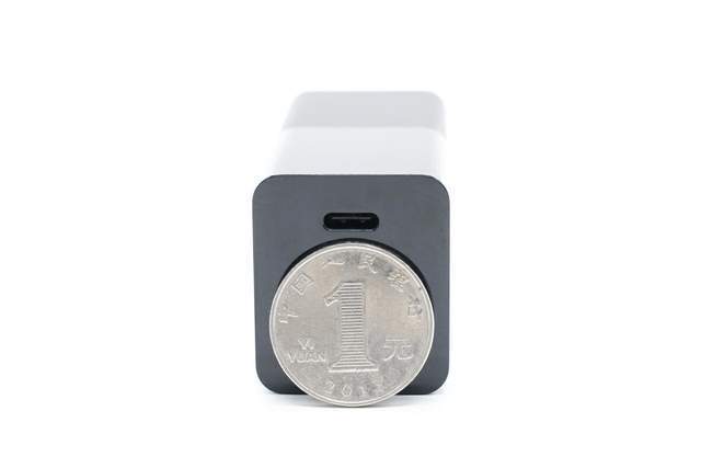 thinkplus GaN 100W口红电源输出面板面积与1元硬币相比,稍大一些。