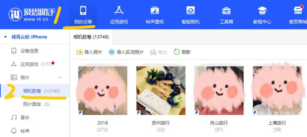 电脑上下载爱思助手应用后,然后直接用数据线连接,就可以将手机里的图片拷贝到电脑上了。