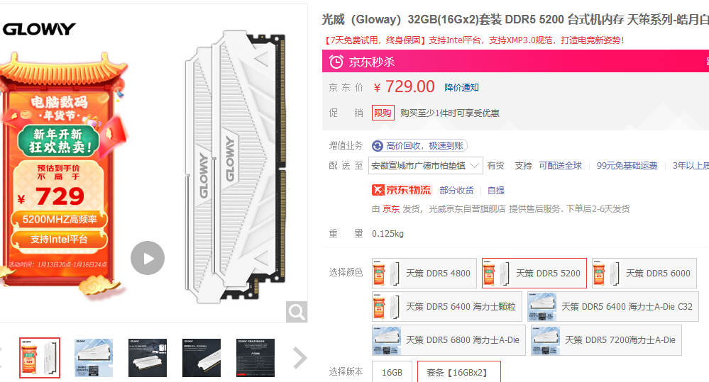 不过现在好了,400元不到你就可以享受到最新的DDR5内存,装机成本大大降低,这款国产光威天策DDR5 5200MHz 内存条;这款天策DDR5的16G单条才3百多元,32GB(16Gx2)套装的DDR5价格也才700出头一点,这个价格直逼DDR4,相对来说要实惠很多了。