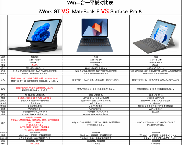 其实选择产品最为重要的还是价格和配置。这款酷比魔方随行本 iWork GT真的是直接吊打苏菲和一众国产大牌了,8+256G或者是16+512G以及预装的正版微软windows系统,已然诚意满满了,各种办公形态随意切换,甚至还可以适配妙控悬浮键盘使用哦,而这或许这就是二合一笔记本的魅力所在吧!
