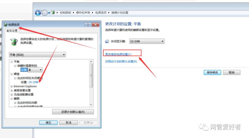 (1)设置电源选项属性。控制面板—电源选项—电源使用方案—家用/办公桌,关闭监视器—20分钟以后,关闭硬盘—从不,系统待机—从不—确定。