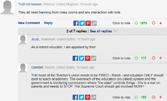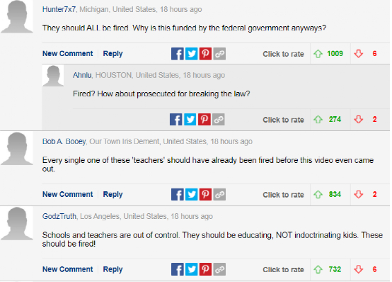 在这篇报道刊登后,许多立场偏保守的读者都表示自己对这种做法极为愤怒,他们认为教师不该有意引导学生主动接触性少数群体的有关信息,导致学生产生错误的两性观念,有家长认为,学校刻意对家长隐瞒子女的心理状况涉嫌违法。也有人质疑这样的群体为什么会获得美国联邦政府的资助。