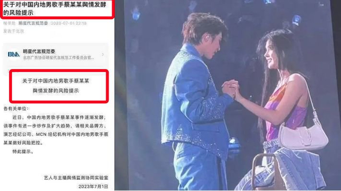 事情愈演愈烈,蔡徐坤一直冷处理,随后,北京广告协会规范委发布了对蔡徐坤的风险通知,这间接性表明,他已经被“上面”盯上。